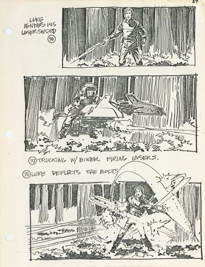 Sign up to be notified for this exclusive release of over 90 never-before-seen, preliminary FX photostat storyboards used in the making of Return of the Jedi. These authentic studio artifacts served as the foundational blueprints for George Lucas's legendary visual effects house, Industrial Light & Magic.