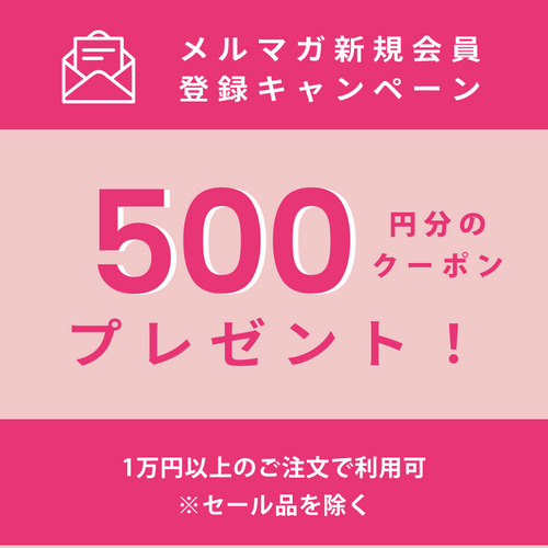 メルマガにお申込みいただくと、1万円以上のお買い物で使えるクーポンをプレゼントいたします!※数分後にご登録のメールアドレスにクーポンコードが届きます。※当店をはじめてご利用いただく場合のみ(購入前のみ)クーポンメールが送信されます。※セール品・特価品利用不可※ポイントとの併用不可